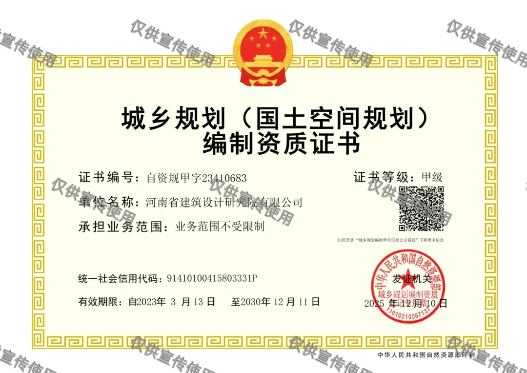 資質(zhì)的成功延續(xù),標(biāo)志著河南省院在城鄉(xiāng)規(guī)劃領(lǐng)域的專業(yè)能力、人才結(jié)構(gòu)、項目業(yè)績及管理體系等方面的綜合實力獲得國家主管部門的認(rèn)可,也是我們面向“十五五”時期國家城鄉(xiāng)建設(shè)與空間治理新要求所做的前瞻性準(zhǔn)備,為進(jìn)一步開拓市場、服務(wù)城鄉(xiāng)建設(shè)提供了有力支撐,也為公司整合資源、強(qiáng)化優(yōu)勢創(chuàng)造了有力條件。