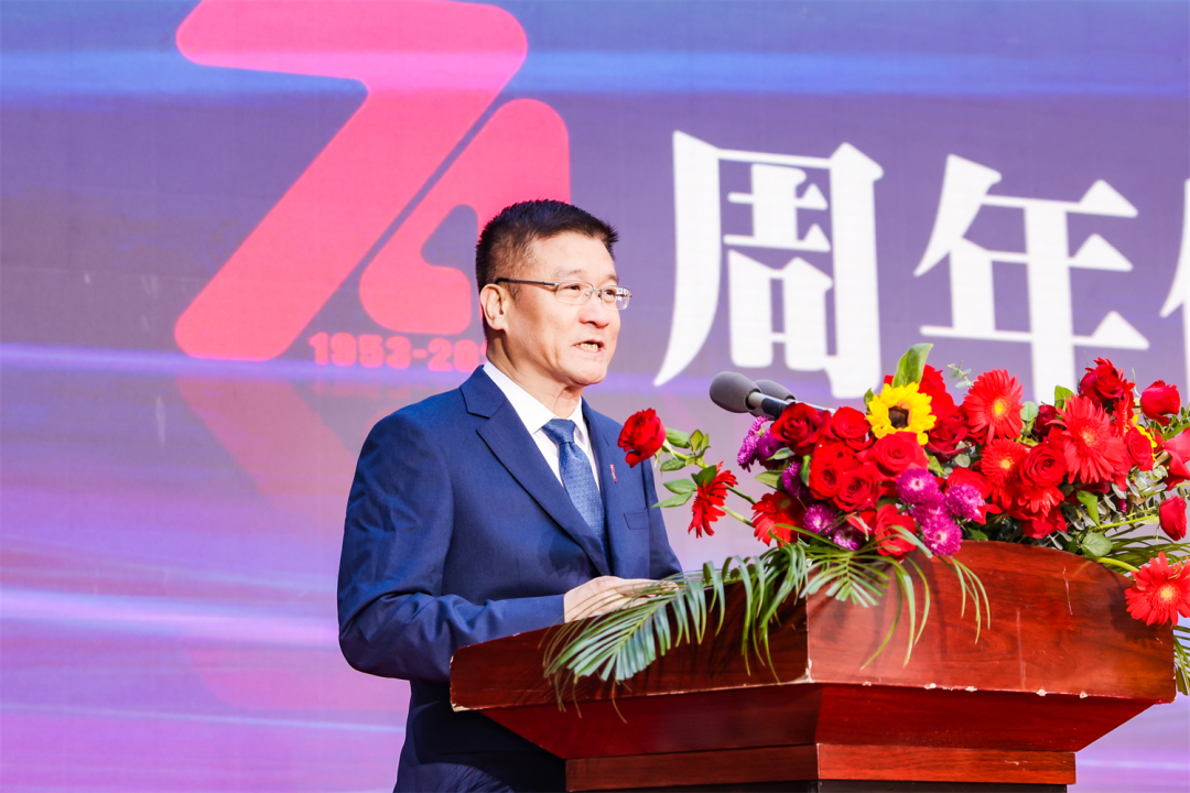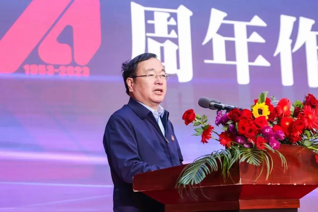 嘉賓代表深切厚重的發(fā)言將現(xiàn)場氣氛推至高潮。緊接著河南省建筑設(shè)計研究院有限公司黨委書記、董事長安杰代表公司發(fā)表了河南省院七十周年紀(jì)念活動主旨講話。他講述了河南省院自1953年以河南省人民政府建工局設(shè)計處為名成立至2007年轉(zhuǎn)企改制,直到如今成為累計完成2萬余項工程設(shè)計、斬獲600余次國家與省級獎項、作品遍及海內(nèi)外的優(yōu)秀勘察設(shè)計綜合企業(yè),70年歷程中省院人以心血與智慧開拓出的改革、創(chuàng)新、發(fā)展之路。站在2023新的起點,他提出了對公司發(fā)展的四點希望:一是堅持核心文化,奔赴企業(yè)宏偉愿景,二是堅持對標(biāo)一流,加速構(gòu)建企業(yè)發(fā)展新格局,三是堅持創(chuàng)新引領(lǐng),搶抓機(jī)遇實現(xiàn)趕超發(fā)展,四是堅持合作共同發(fā)展。希望全體員工把握時代機(jī)遇,以更為充沛的動力和信心投身新時代住房和城鄉(xiāng)建設(shè)事業(yè)。