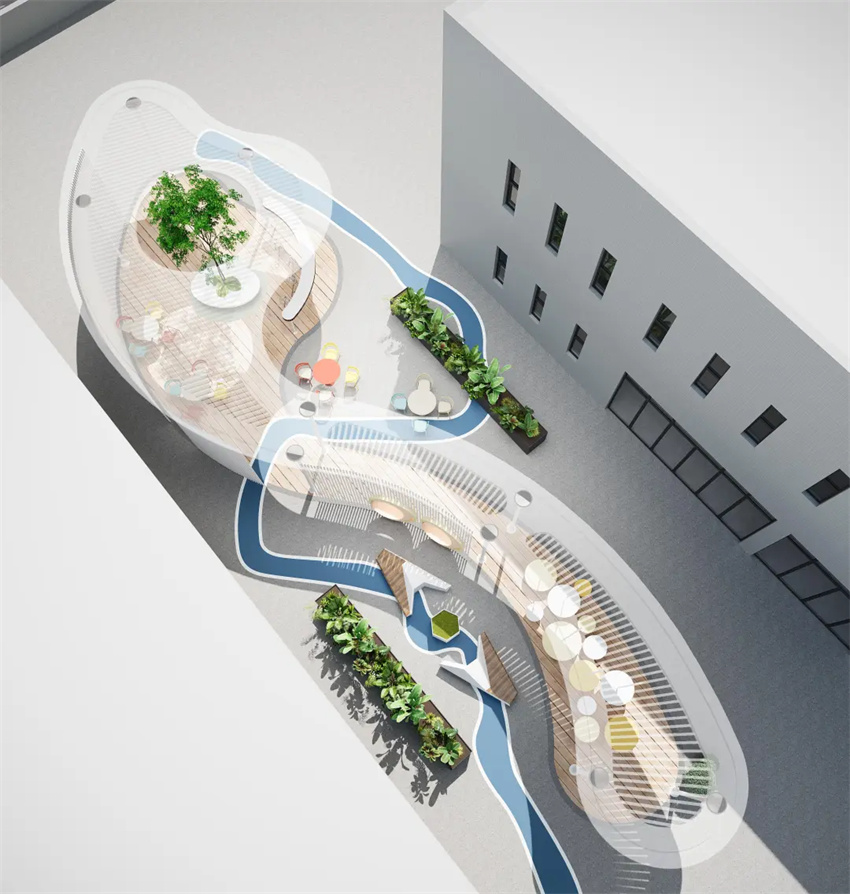 項目立足“立德樹人、服務育人”的核心理念,設計以“水之靈動、工之匠心”為靈感主線,構建集黨團建設、學術交流、生活服務、文化創(chuàng)意于一體的復合型空間。將水文化符號與現代高校服務需求相融合,打造兼具文化認同感與時代適應性的“第三成長空間”。