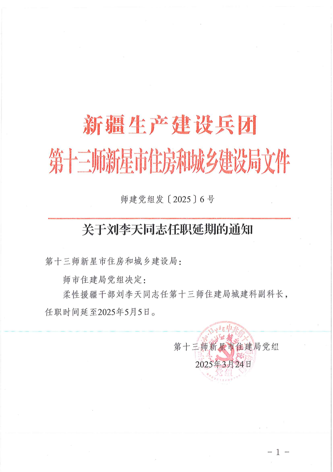 2024 年春天,劉李天作為省住建廳選派的第四批援疆干部,只身前往新疆生產(chǎn)建設(shè)兵團(tuán)第十三師新星市住建局掛職。