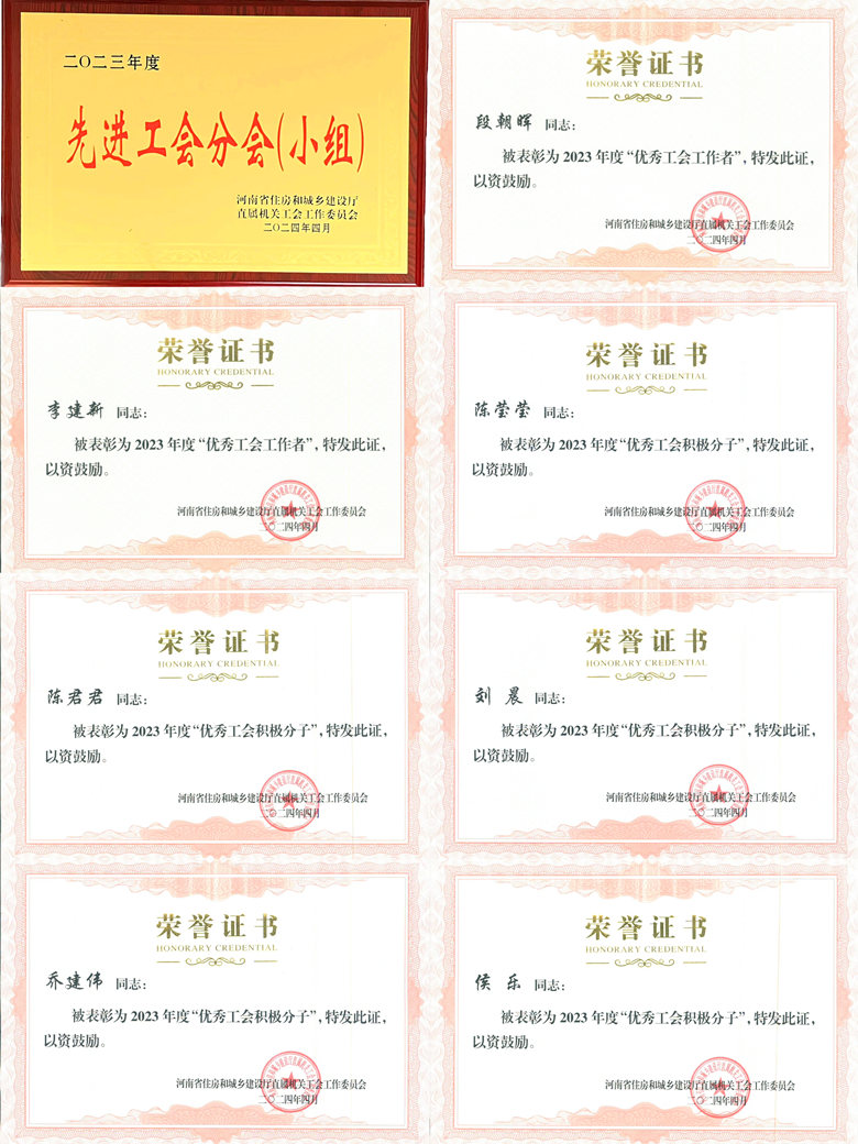 根據(jù)中共河南省住房和城鄉(xiāng)建設(shè)廳機關(guān)黨委印發(fā)《關(guān)于表彰2023年度優(yōu)秀共產(chǎn)黨員、優(yōu)秀黨務(wù)工作者和先進基層黨組織的通報》(豫建機黨〔2024〕16號),河南省住房和城鄉(xiāng)建設(shè)廳直屬機關(guān)工會印發(fā)《關(guān)于表彰2023年度廳直工會工作先進集體和先進個人的通報》(豫建工直〔2024〕1號),我公司黨委及員工獲得表彰。