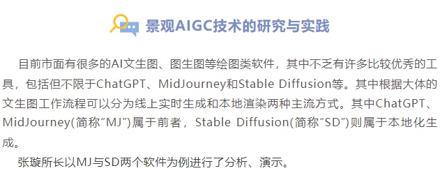 本次分享會(huì)包括主講人發(fā)言、互動(dòng)答疑兩大環(huán)節(jié),主要圍繞AIGC技術(shù)在建筑設(shè)計(jì)專業(yè)的最新前沿發(fā)展趨勢(shì)、各軟件優(yōu)劣勢(shì)分析等方面進(jìn)行了深入的交流。