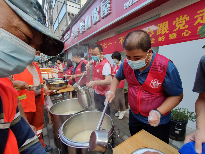 7月4日,為慶祝中國(guó)共產(chǎn)黨建黨101周年,大力弘揚(yáng)奉獻(xiàn)、友愛、互助、進(jìn)步的志愿精神,河南省建筑設(shè)計(jì)研究院有限公司第二黨支部在李翔書記的帶領(lǐng)下,到鄭州市杜嶺街愛心粥屋開展志愿服務(wù)活動(dòng),為環(huán)衛(wèi)工人、孤寡老人等弱勢(shì)群體獻(xiàn)上濃濃愛心。