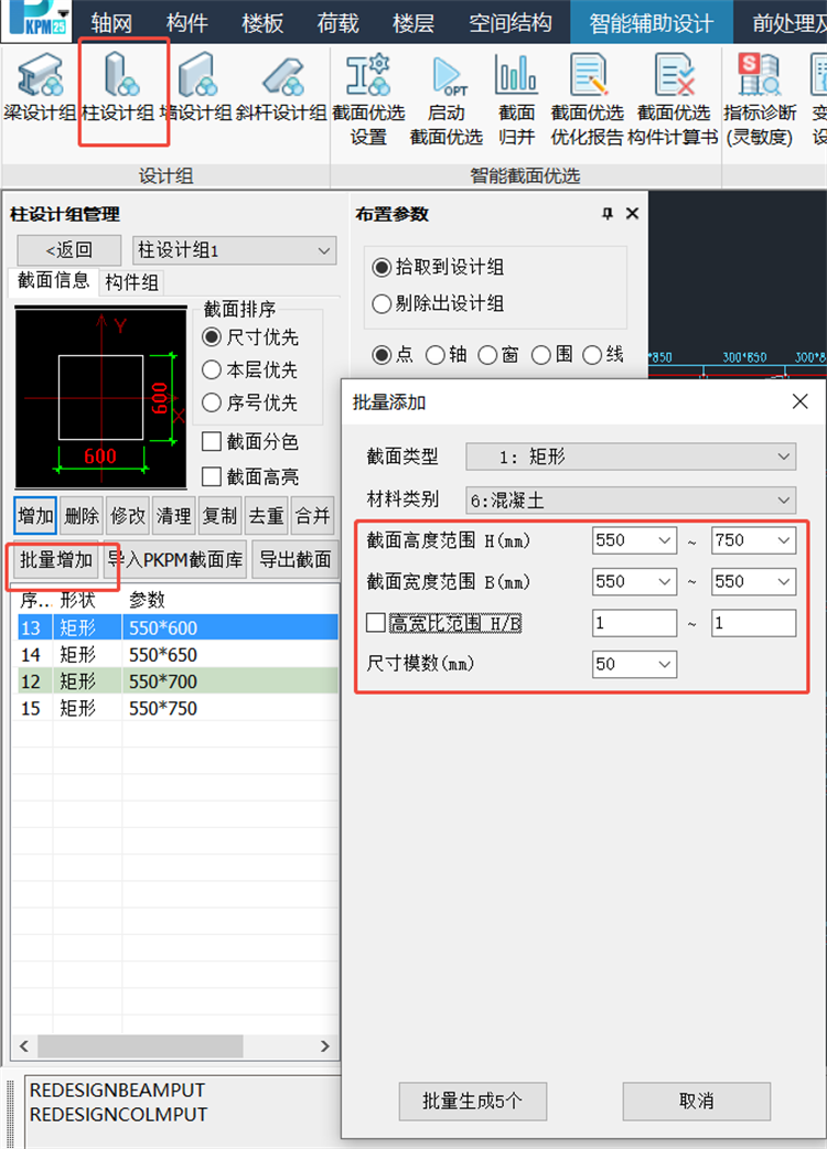 圖5 梁柱備選截面庫