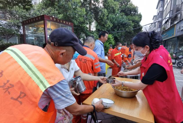志愿者們依次發(fā)放饅頭、盛菜、盛粥,整個(gè)過程井然有序,忙而不亂。一聲聲“早上好!您辛苦了”,一碗碗愛心粥帶著健康與祝福,簡單而美味,讓人感覺到滾滾暖流,師傅們連聲表示感謝,臉上也洋溢著幸福的笑容。隨后,志愿者們還上門為年齡較大、行動不便的獨(dú)居老人送去了熱騰騰、可口的飯菜。待大家用餐結(jié)束后,志愿者們及時(shí)把桌椅整理入庫,打掃好現(xiàn)場的衛(wèi)生,做好最后的工作。