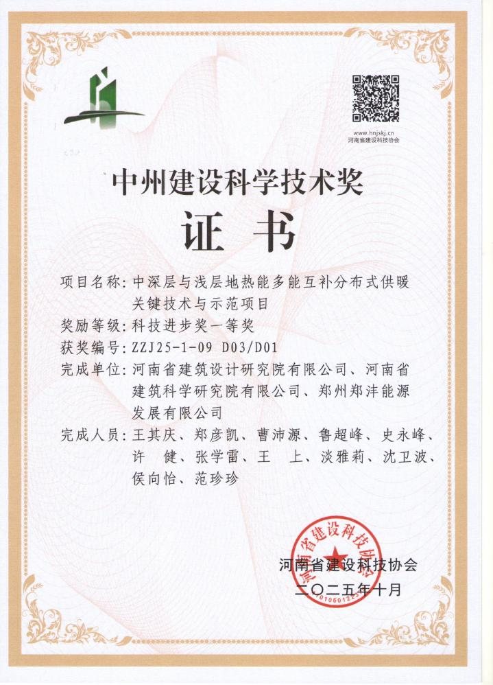 我院自2009年起,系統(tǒng)開展中深層、淺層地?zé)崮芾眉夹g(shù)研究,取得了豐碩成果。近期,“中深層與淺層地?zé)崮芏嗄芑パa(bǔ)分布式供暖關(guān)鍵技術(shù)與示范項(xiàng)目”榮獲中州建設(shè)科技進(jìn)步獎(jiǎng)壹等獎(jiǎng),標(biāo)志著我院在該領(lǐng)域的創(chuàng)新實(shí)踐再獲認(rèn)可。