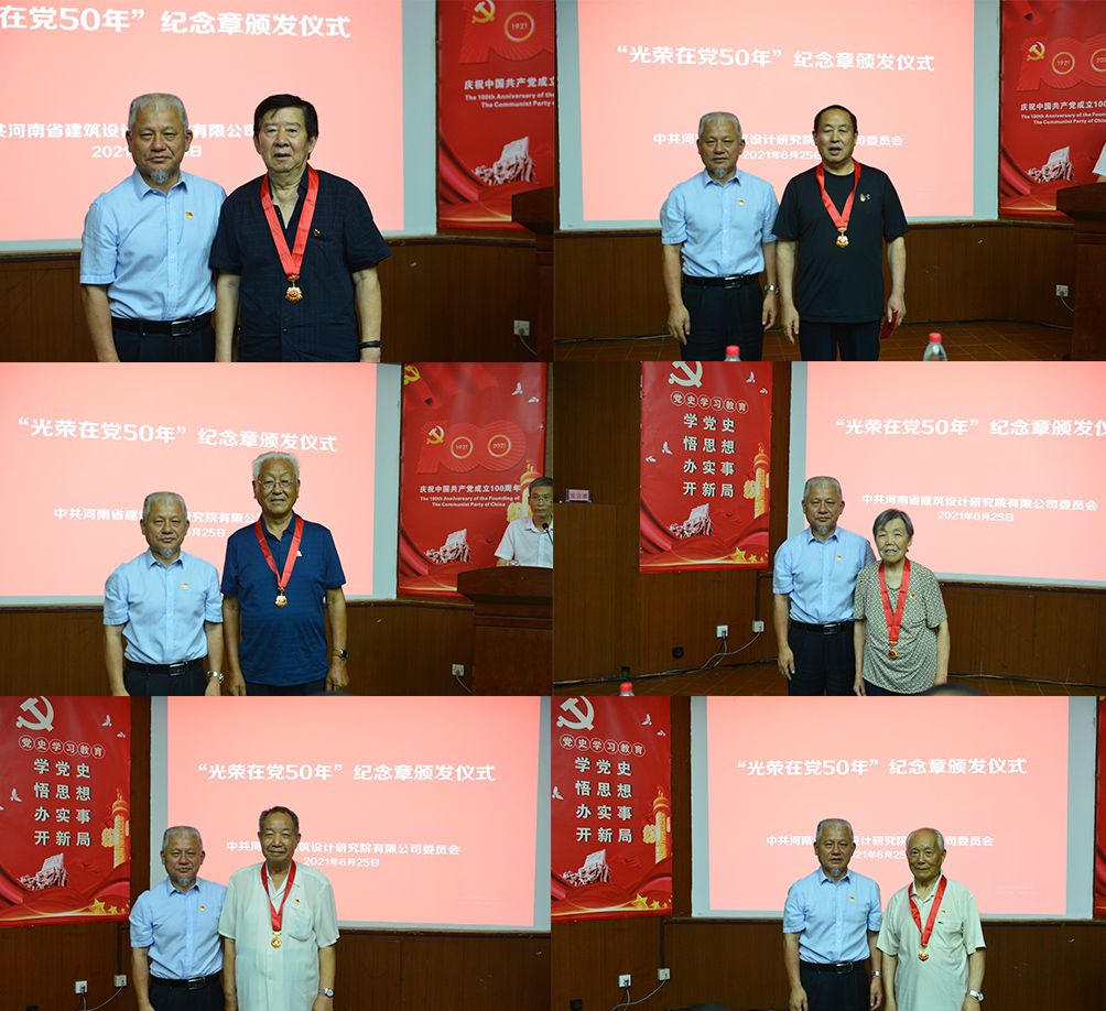 6月25日上午,在中國共產(chǎn)黨成立100周年之際,公司黨委在報告廳隆重舉行“光榮在黨50年”紀念章頒發(fā)儀式,向黨齡達到50周年、一貫表現(xiàn)良好的部分離退休老黨員代表頒發(fā)“光榮在黨50年”紀念章。公司黨委委員、各黨支部書記、退休黨支部委員20余人出席儀式,紀檢書記張玉民主持。