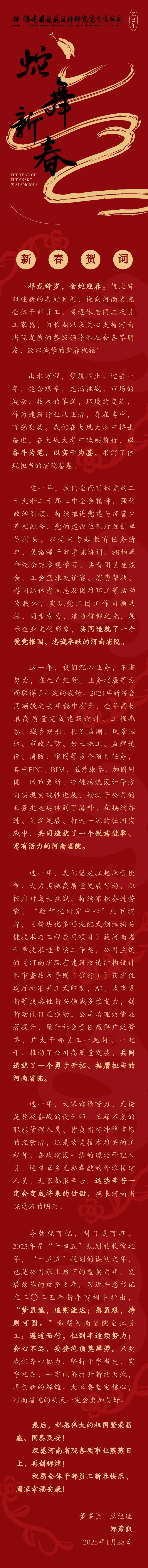 河南省建筑設計研究院有限公司二〇二五年新春賀詞