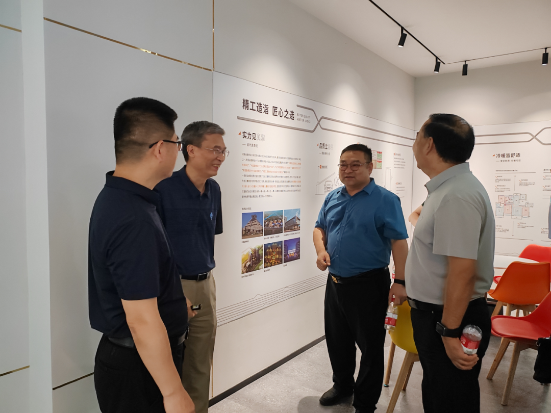河南四建集團(tuán)總裁賈俊鋒一行在我公司代表與和清園置業(yè)有限公司總經(jīng)理張玉民的陪同下參觀了和清園置業(yè)東悅水岸·和悅園項目城市展廳,了解項目的建設(shè)與在售情況,雙方就EPC、BIM、裝配式等新業(yè)務(wù)發(fā)展與合作方向進(jìn)行了技術(shù)交流。