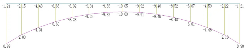 溫度作用:鄭州市最高基本氣溫Tmax=36°C,最低基本氣溫Tmin=-8°C,屋蓋合攏溫度區(qū)間設(shè)定為15°C~20°C,則升溫△T=21°C,降溫△T=28°C。