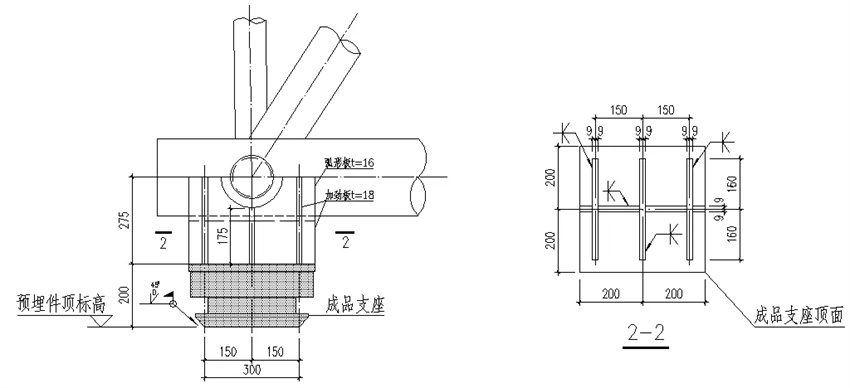 單向密肋梁:樓蓋對應(yīng)腹桿位置設(shè)置垂直于拱架梁的單向密肋梁,梁截面250X500;